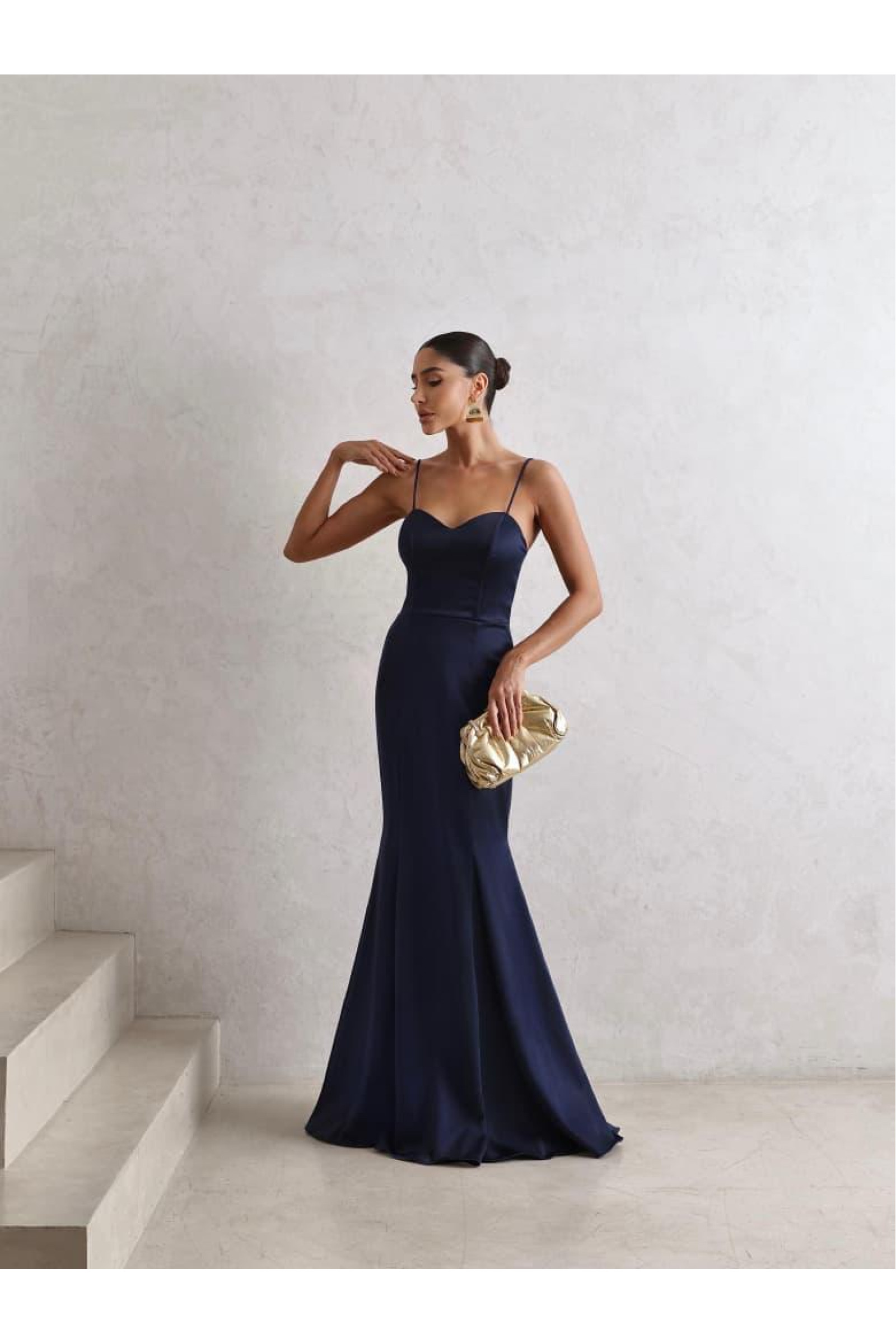 Fechamento: Zíper invisível nas costas para um ajuste preciso.