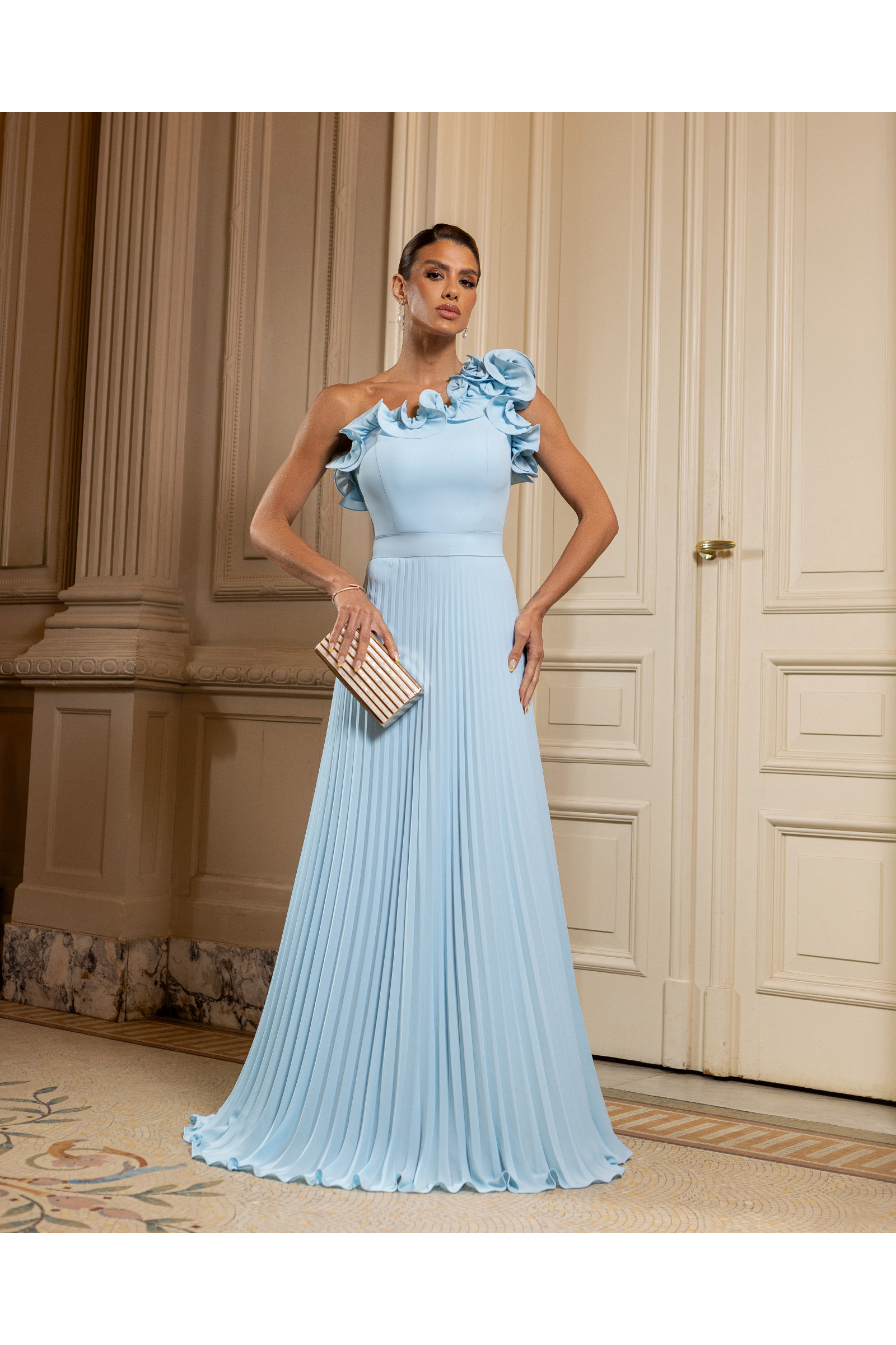 VESTIDO DE FESTA BOHEMIAN UM OMBRO COM DETALHE FLOWERS